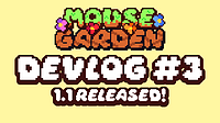 - July 15, 2023 by maji#mousegarden, #idle, #garden, #farming, #farm, #mouse, #click, #point and clickThis update just adds quality of life stuff, and a bunch of new achievements. Achievements also have a purpose for people who enjoy vanity. 1.4.2 Changelog Major Changes and Additions Added Corn ! Cor... Continue reading